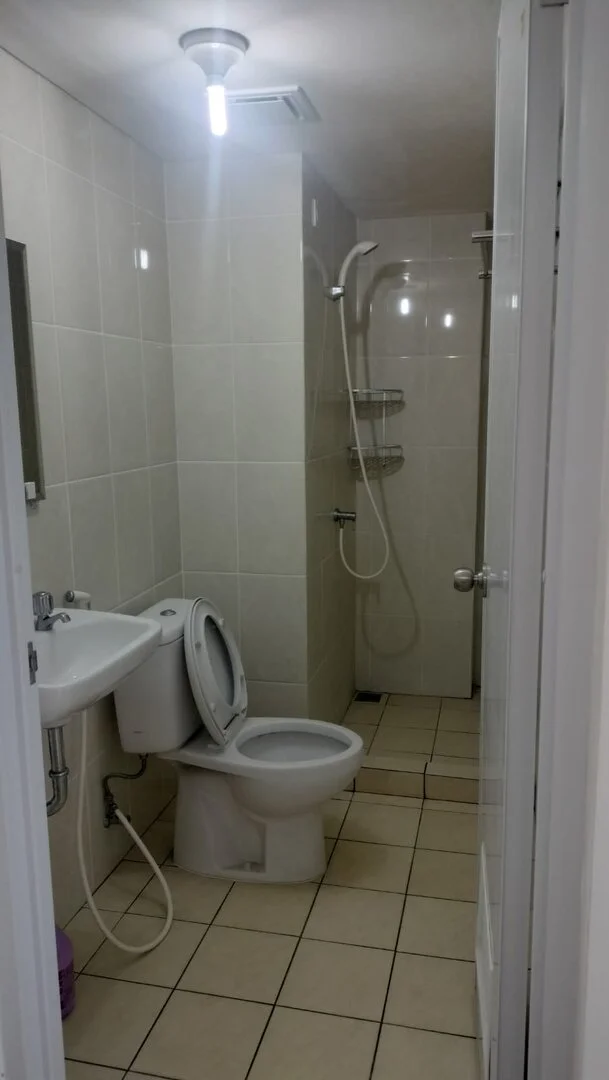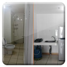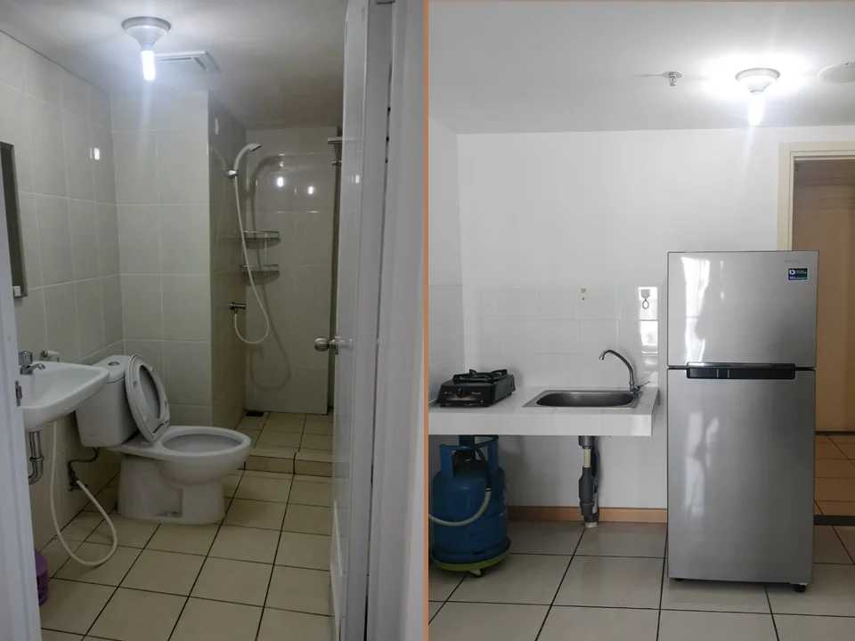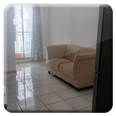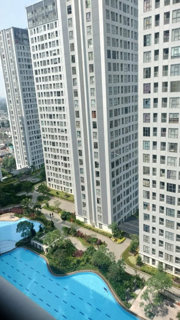 Luas Bangunan : 45,93 m2 | KT 2 | Km 1 | Lantai 21 | PLN 3500 va | View : Swimming Pool | 3 Ac |