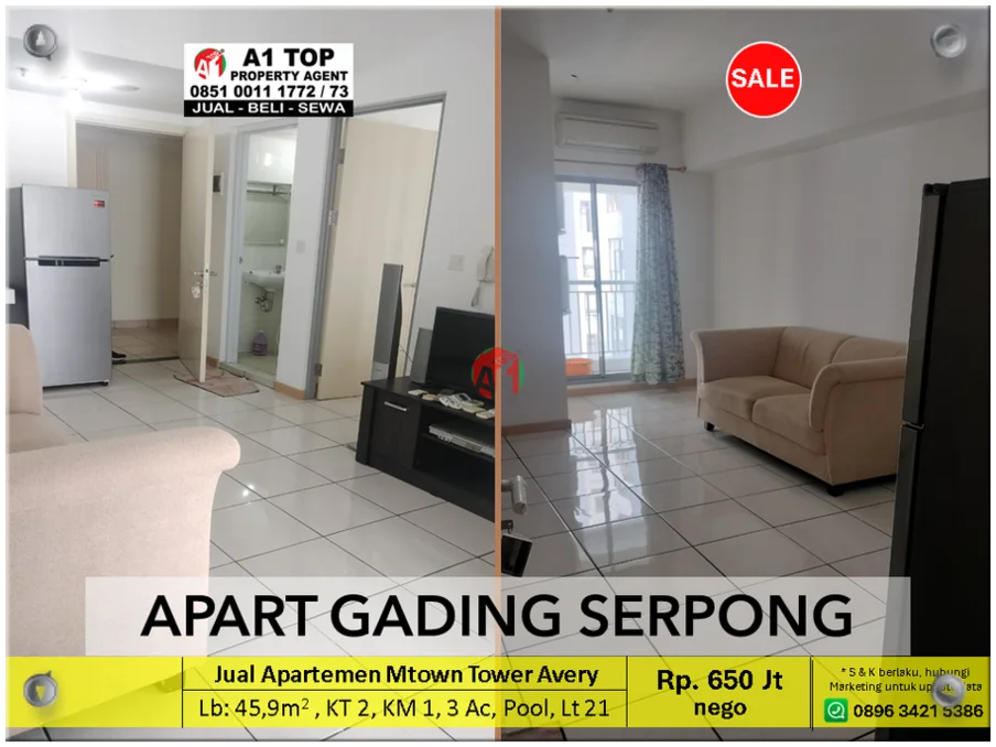 Apartemen Mtown Tower Avery, harga Rp. 650 Juta (nego)