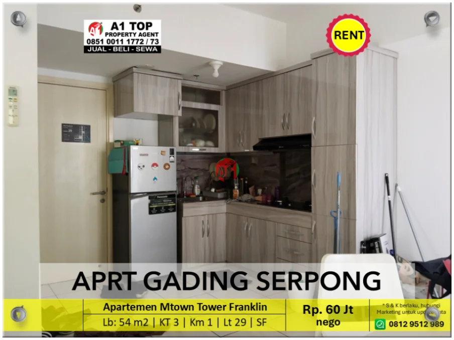Apartemen Mtown, harga Rp. 60 juta/tahun (nego)