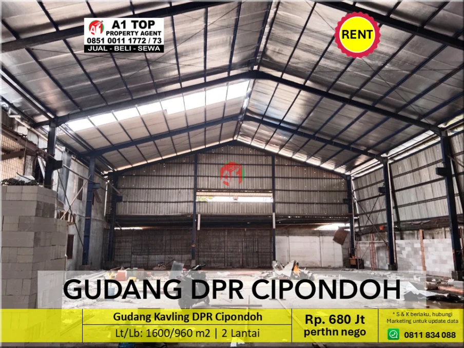 Gudang Kavling DPR Cipondoh, harga Rp. 680 juta/tahun (nego)