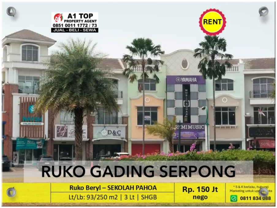 Disewa Ruko Beryl Depan Club House Golf Gading Serpong