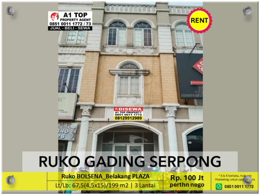 Ruko Bolsena Areal CBD, harga Rp. 110 juta/tahun (nego)