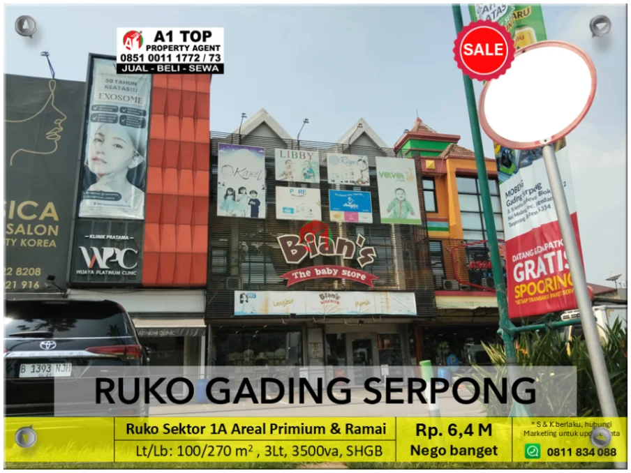 Dijual Ruko Jalan Boulevard Sektor 1B, Pinggir Jalan Utama Masuk Kawasan Gading Serpong