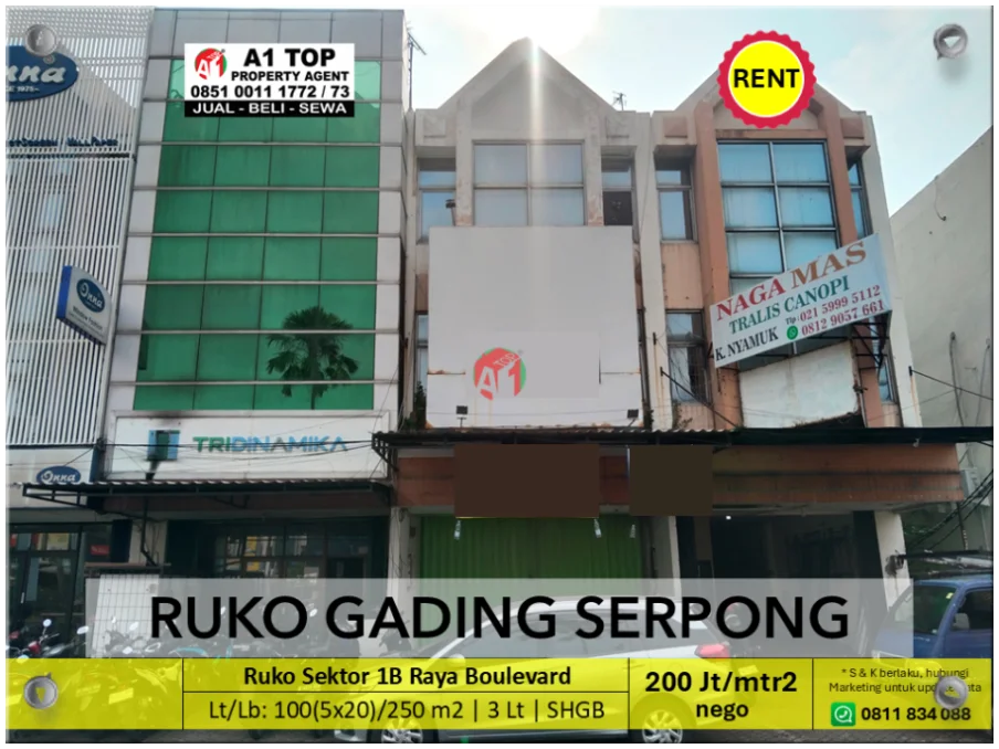 Ruko Boulevard Sektor 1B, harga Rp. 200 juta (nego)