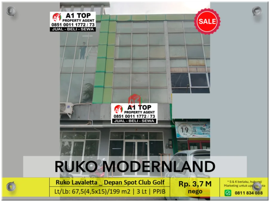 Ruko La Valetta setinggi 3 lantai dengan ukuran 4,5 x 15 meter tersebut terletak di depan Cluster La Valetta, persis di seberang lapangan Golf Kota Modern.