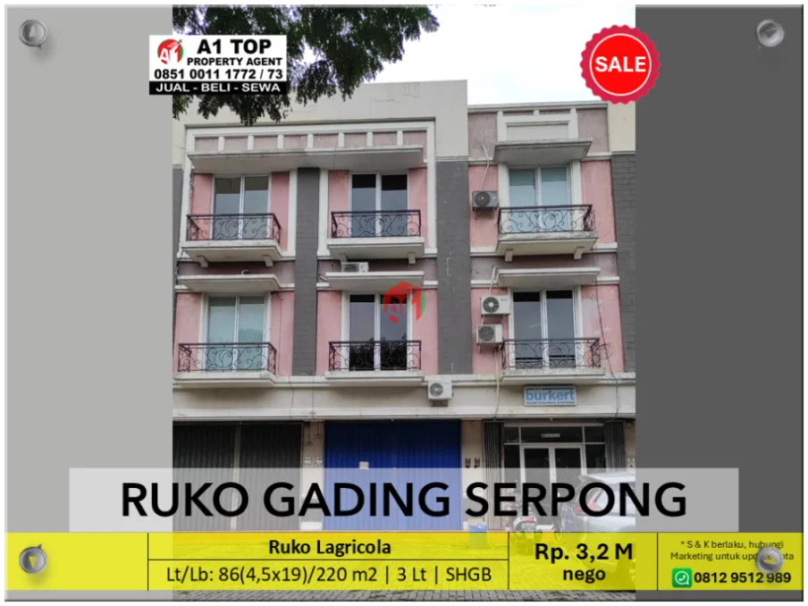Dijual Ruko Lagricola Selangkah ke CBD Gading Serpong