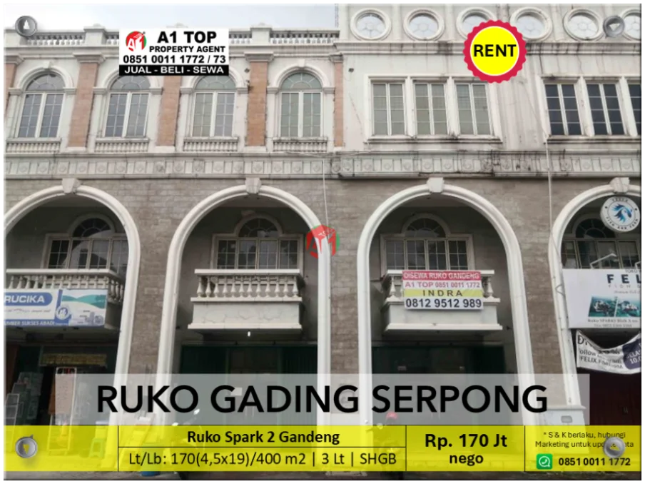Ruko 2 Sparks Gandeng, harag Rp. 170 juta/tahun (nego)