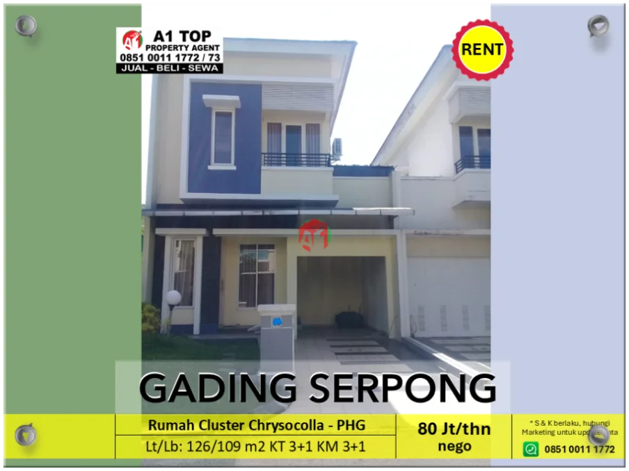 Disewa Rumah Cluster Chrysocolla Pondok Hijau Golf Gading Serpong
