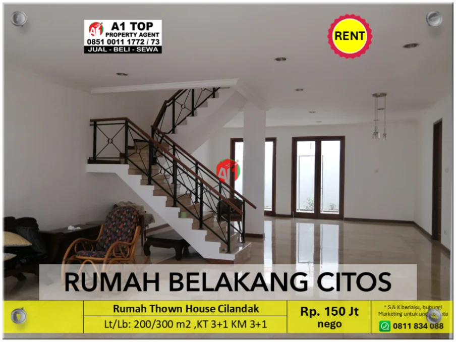 Letak rumah di dalam komplek yang tediri dari 16 unit Rumah nempel dengan CILANDAK TOWN SQUARE (CITOS) bagian belakang, keamanan 24 jam, kondisi rumah siap huni.