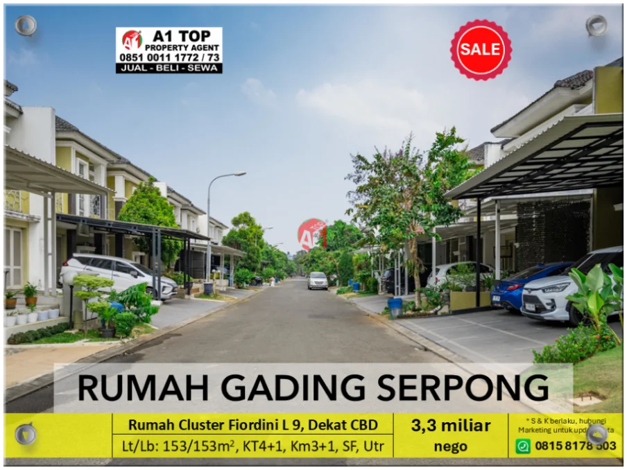 Rumah Dijual Cluster Fiordini Lokasi Ramai CBD Gading Serpong