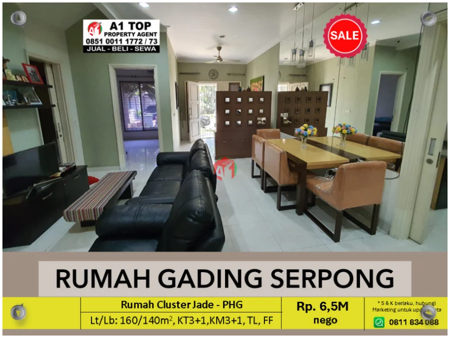 Rumah Dijual Cluster Jade Pondok Hijau Golf Gading Serpong