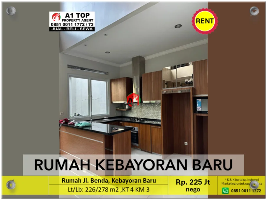 DISEWA Rumah Kebayoran Baru Benda, Hub wa/call 0851 0011 1772 - A1 Top Property