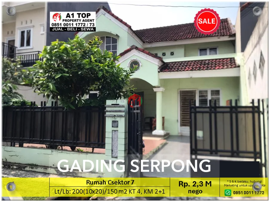 Rumah Sektor 7 Gading Serpong , Harga Rp. 2,3 miliar (nego)