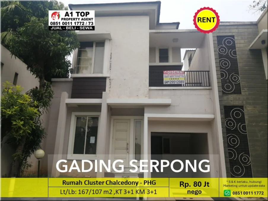 Rumah Cluster Chalcedony, harga Rp. 80 juta/tahun (nego)