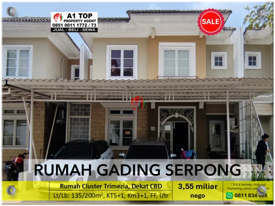 Rumah Dijual Cluster Trimezia Gading Serpong Lokasi Ramai