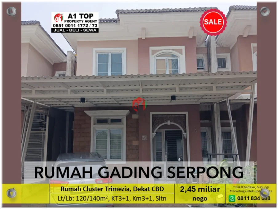 Rumah Dijual Cluster Trimezia Gading Serpong Lokasi Ramai