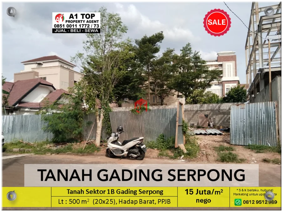 Tanah Sektor 1B Gading Serpong, harga Rp. 15 Juta/m2