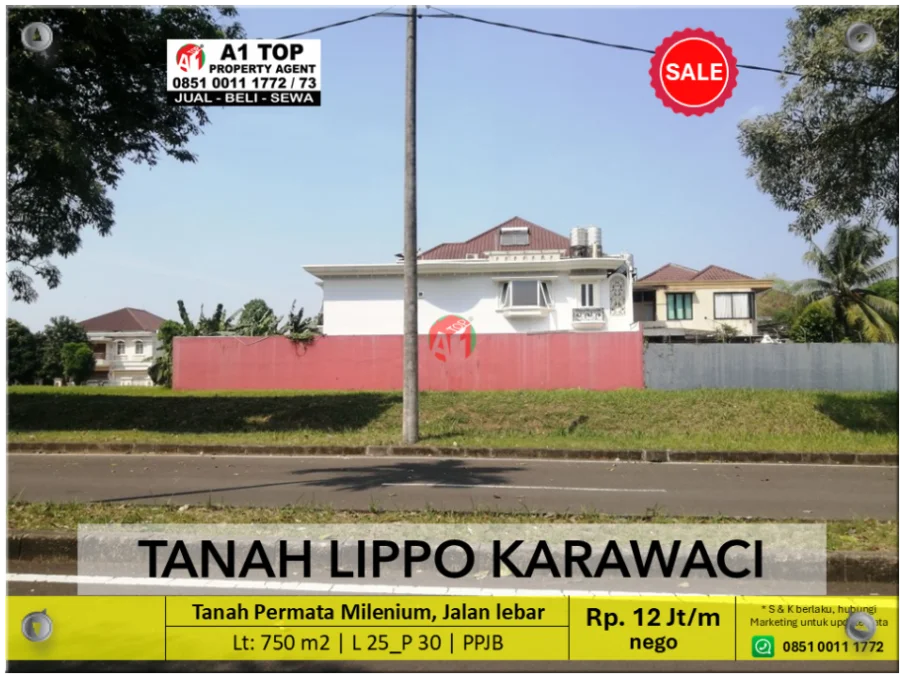 Luas tanah : 750 m2 (L.25 x P.30) | Hadap Timur | PPJB | Jalan Dua Arah dan Lebar |